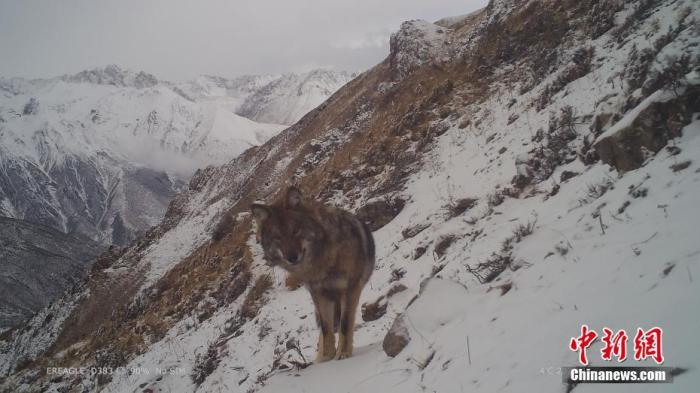 資料圖為2021年11月4日在西藏自治區(qū)丁青縣境內(nèi)由紅外相機(jī)拍攝到的狼活動(dòng)影像。 中新社發(fā) 山水自然保護(hù)中心 供圖