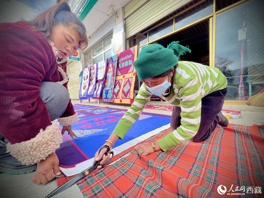 農(nóng)牧民專業(yè)合作社里的村民正在制作門簾。人民網(wǎng) 次仁羅布攝