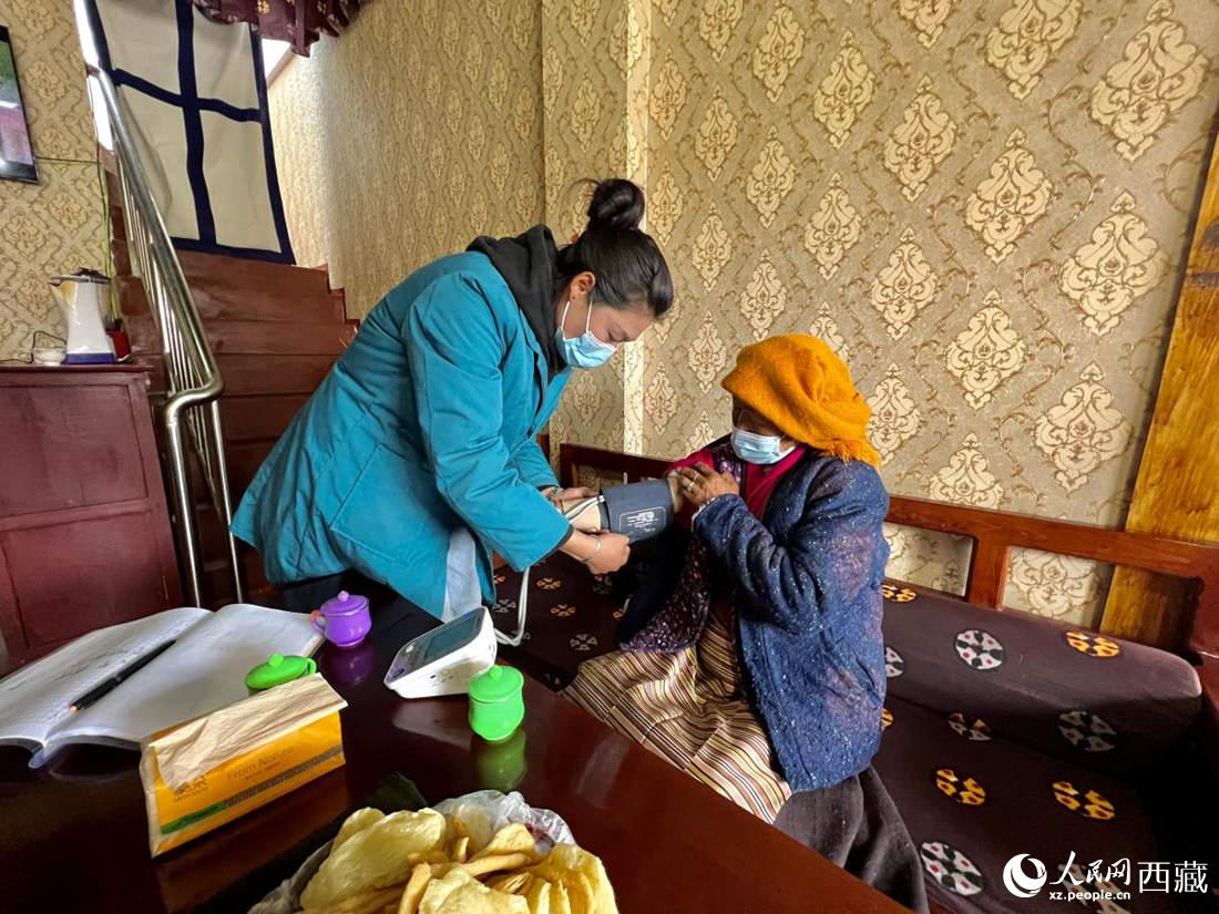 醫(yī)護(hù)人員為老人定期測量血壓。人民網(wǎng) 次仁羅布攝