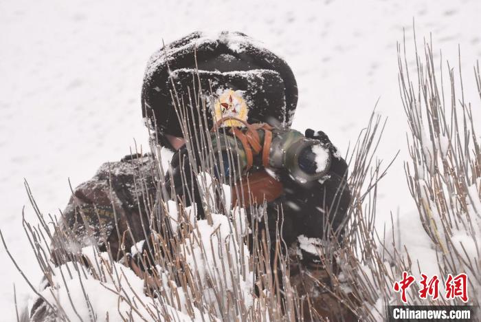 由于道路積雪較厚,車輛無法通行。官兵們采取徒步方式向點位前行,巡邏分隊在風雪中艱難前行,隨著海拔的逐漸增加,氧氣愈發(fā)稀薄,此時的氣溫已經(jīng)接近零下30攝氏度。