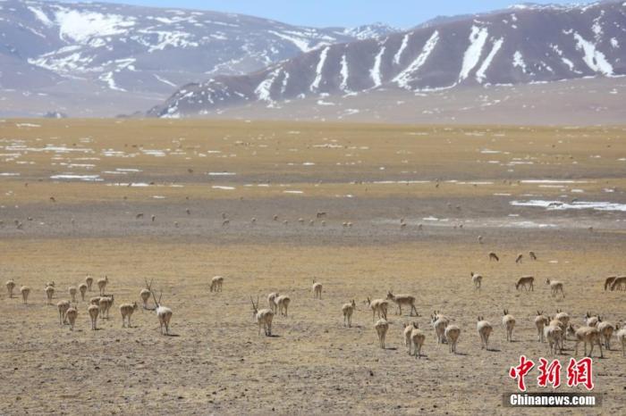“近年來,生態(tài)環(huán)境得到改善,野生動物種群和數(shù)量逐年增長?!比试隽_布說,今年入春后天氣回暖,積雪逐漸融化,藏羚羊陸續(xù)回到這里,形成了大規(guī)模的種群聚集和移動。