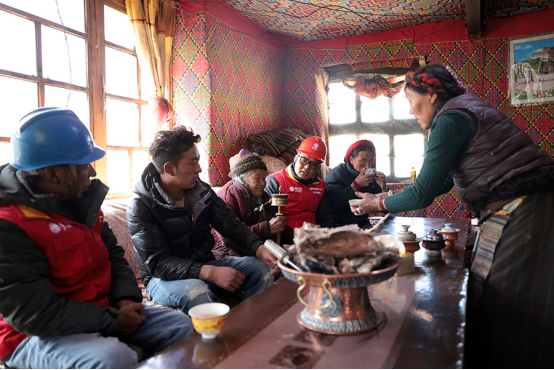 帳篷里大家圍坐在一起,喝著熱氣騰騰的酥油茶,熱情的讓卓不停地向服務(wù)隊隊員獻上脆脆的風干肉,有說有笑。讓卓85歲的老奶奶瑪姆也湊起熱鬧聊家常,即使聽力有些下降,但聊到用電給生活帶來的改變時,老奶奶笑著用流利的藏語說“黨的政策好??!”