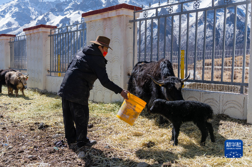 貢培在西藏娘亞牦牛養(yǎng)殖產(chǎn)業(yè)發(fā)展有限責(zé)任公司的標準化養(yǎng)殖場上工作(3月30日攝)。新華社記者 周荻瀟 攝