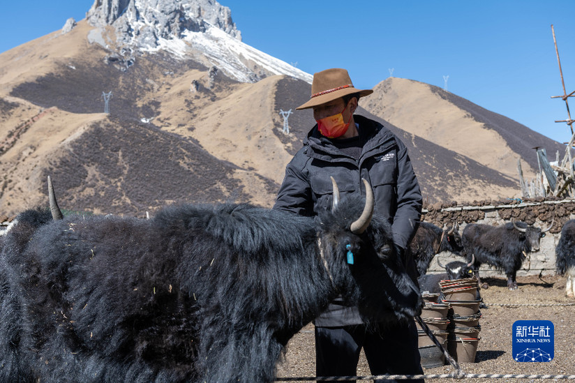 貢培在西藏娘亞牦牛養(yǎng)殖產(chǎn)業(yè)發(fā)展有限責(zé)任公司的養(yǎng)殖場工作(3月30日攝)。新華社記者 周荻瀟 攝