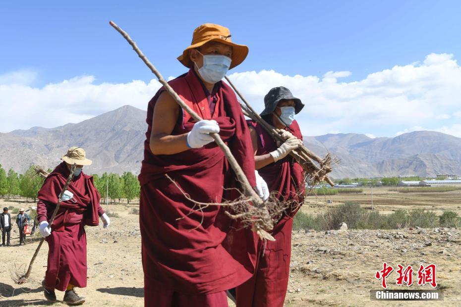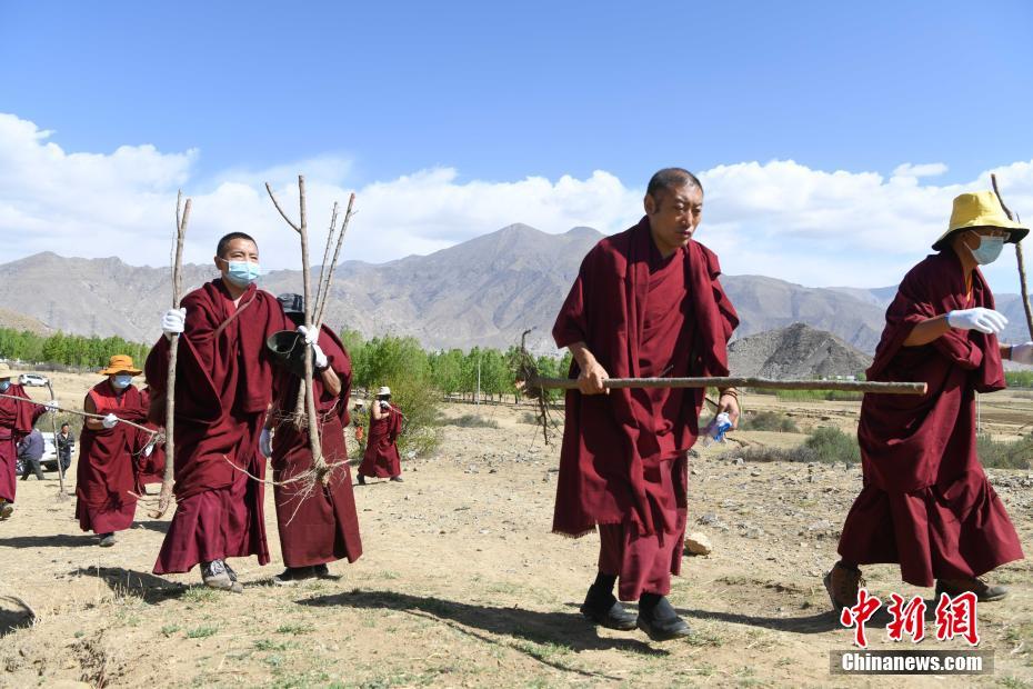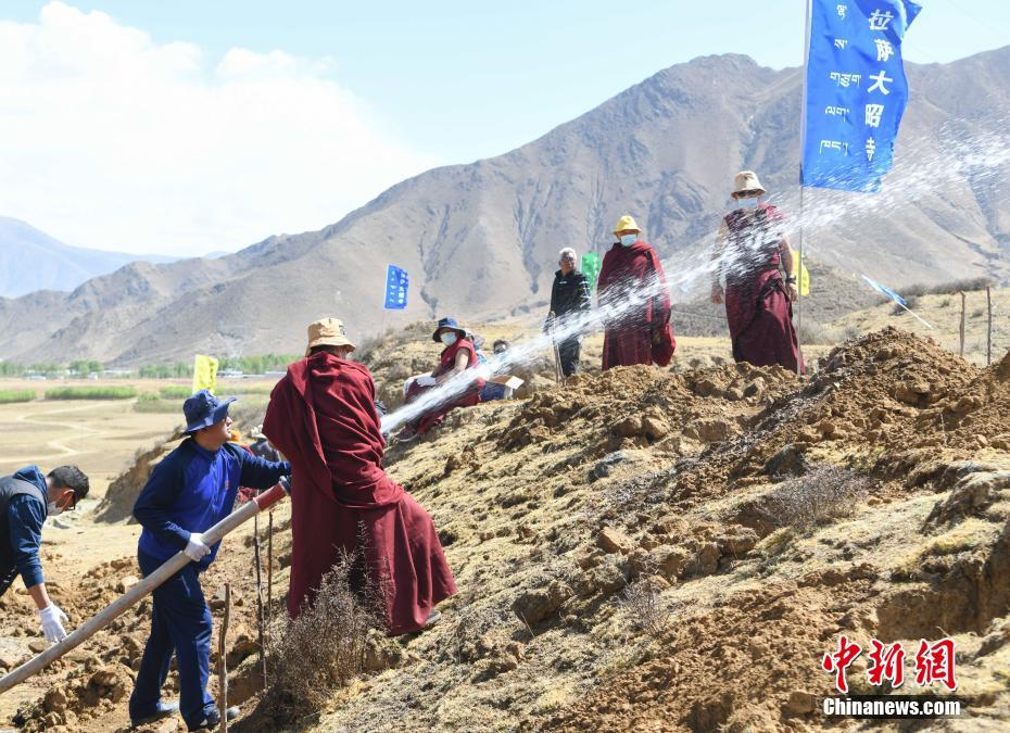 4月15日,西藏大昭寺僧人在蔡公堂鄉(xiāng)植樹。當(dāng)日,西藏大昭寺在拉薩市城關(guān)區(qū)蔡公堂鄉(xiāng)啟動拉薩南北山2800余畝山地綠化工程項(xiàng)目。 中新社記者 貢嘎來松 攝