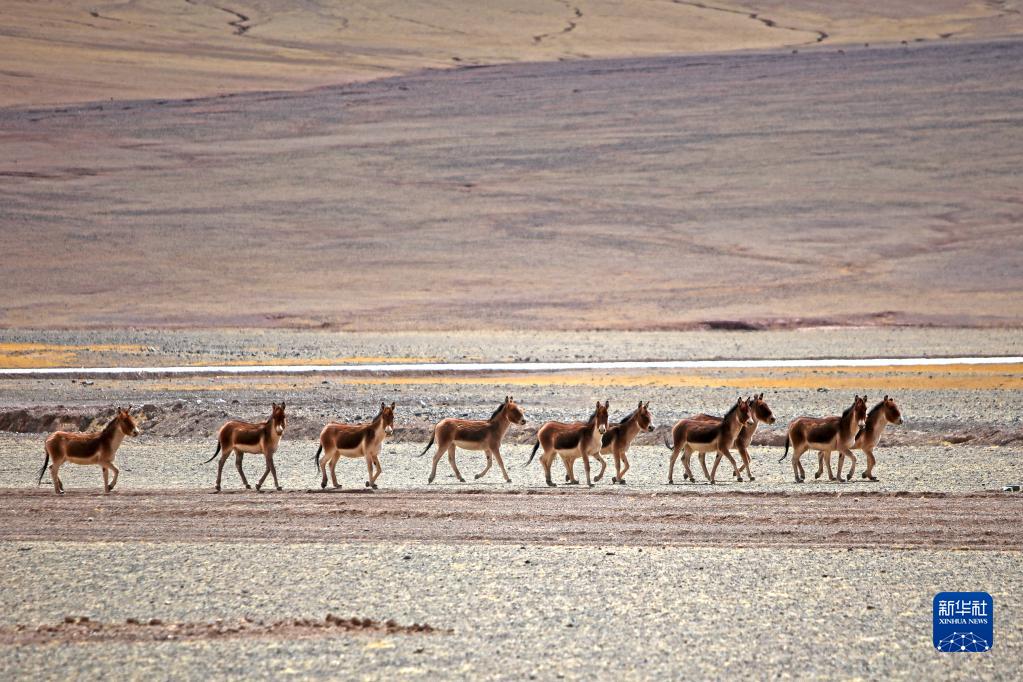 這是在西藏日土縣拍攝的一群藏野驢(4月8日攝)。新華社記者 姜帆 攝
