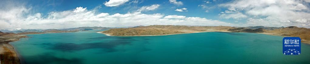 這是在特布拉村拍攝到的羊卓雍錯(cuò)。新華社記者 姜帆 攝(無人機(jī)合成照片,4月16日攝)
