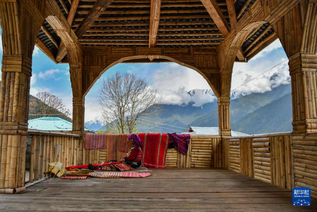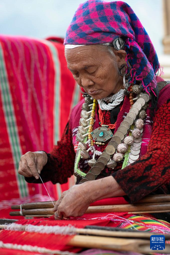 今年72歲的本央老人,是僜人服飾制作技藝西藏自治區(qū)級(jí)非遺傳承人。在西藏林芝市察隅縣沙瓊村,老人身著傳統(tǒng)的僜人服飾,在自家的涼亭里編織布料。