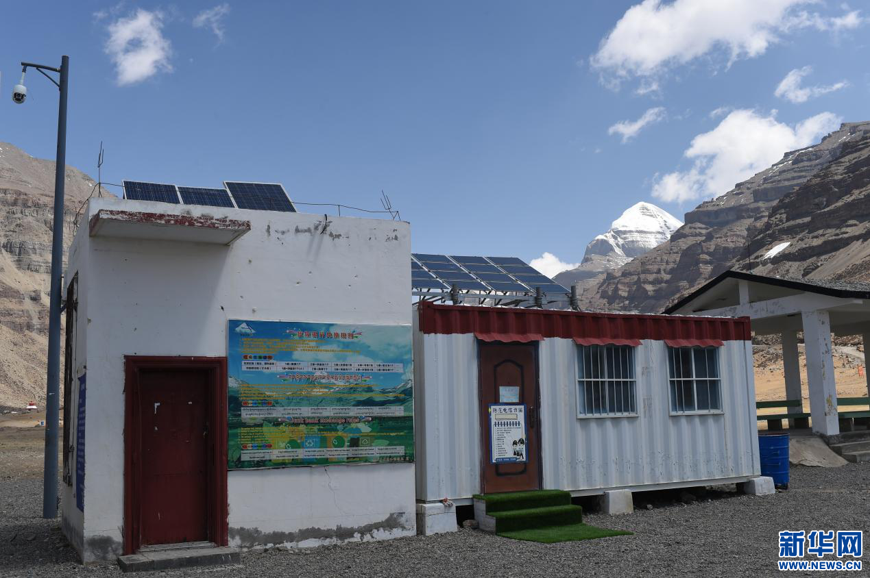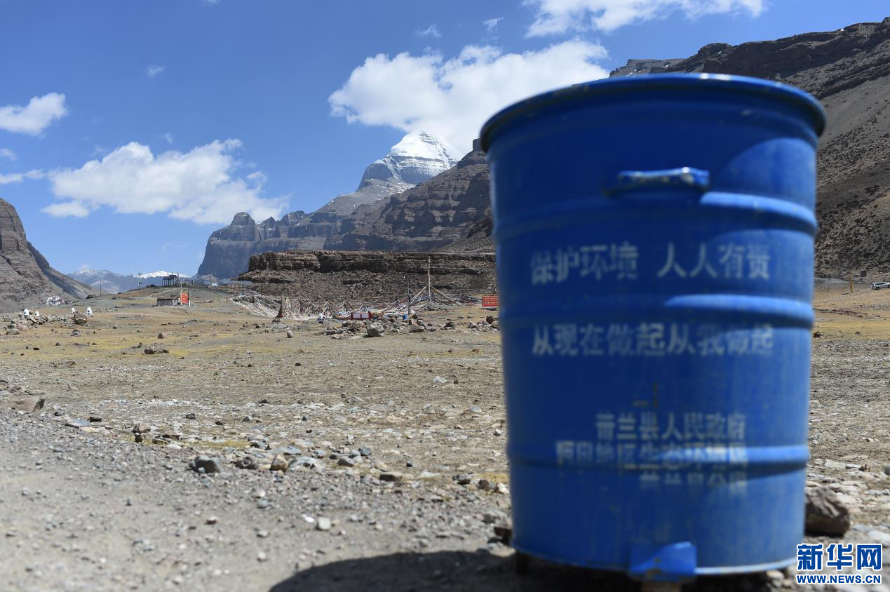 圖為岡仁波齊腳下添置的垃圾箱(4月20日攝)。新華網 旦增努布攝