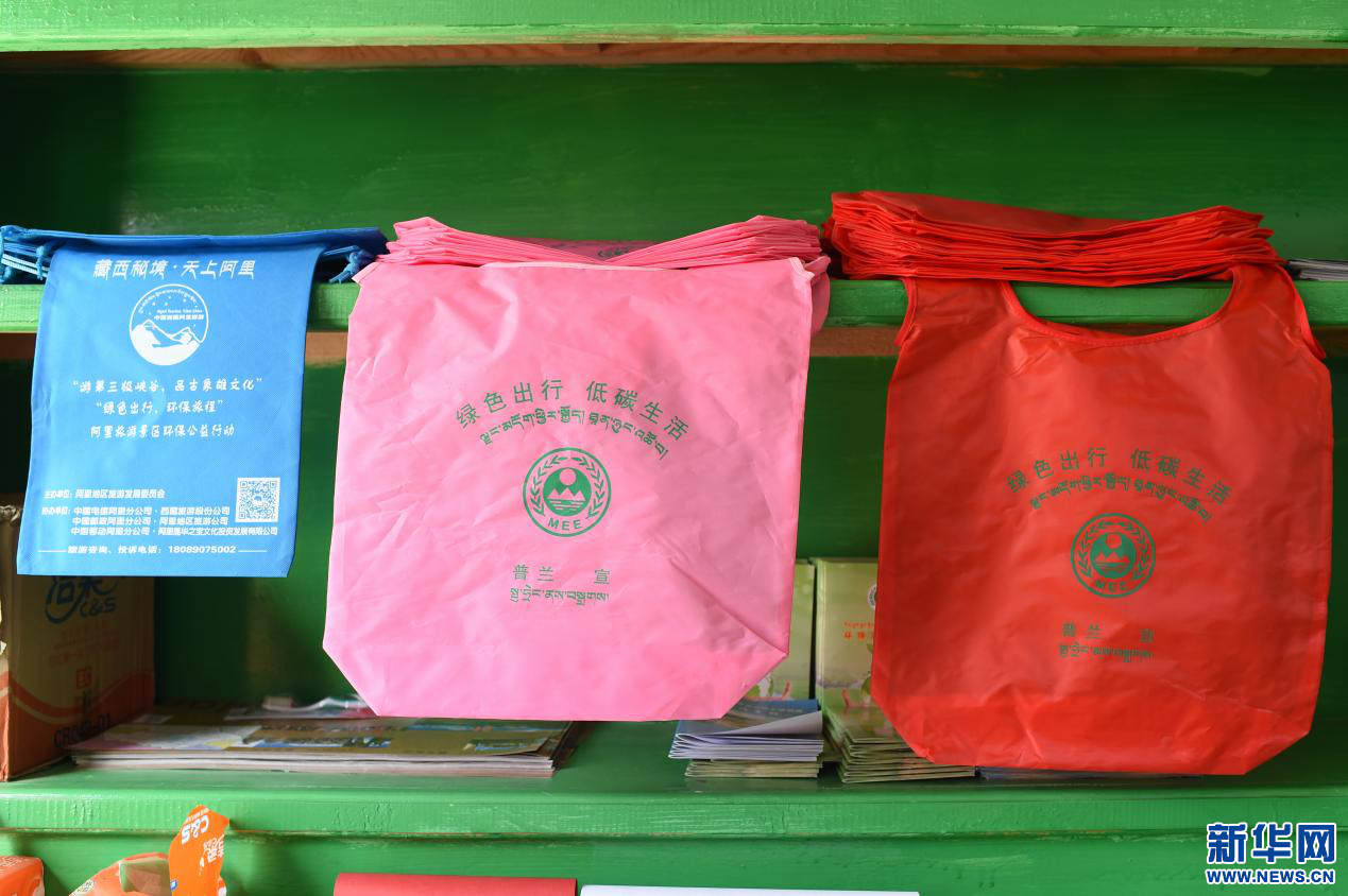 圖為“垃圾銀行”柜臺上擺放的環(huán)保袋(4月20日攝)。新華網 旦增努布攝