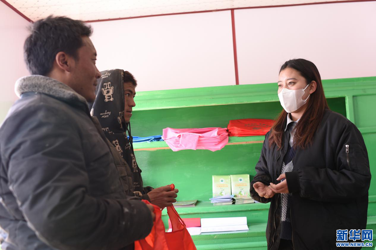 圖為群眾在領取環(huán)保袋(4月20日攝)。新華網 旦增努布攝