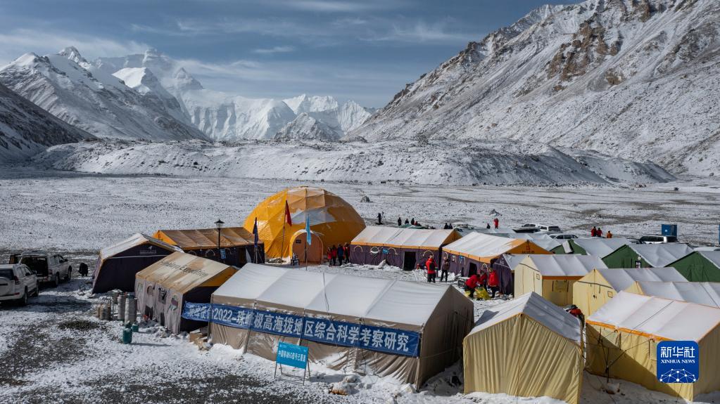 這是海拔5200米的珠峰登山大本營(yíng)(5月1日攝,無(wú)人機(jī)照片)。新華社發(fā)
