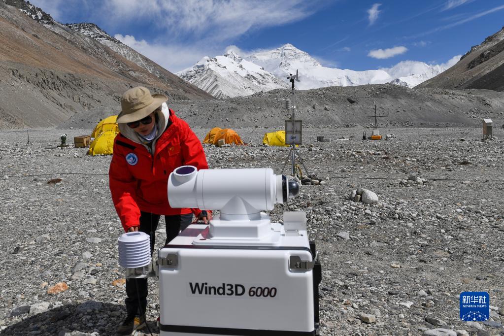 5月2日,在珠峰登山大本營(yíng),科研人員檢查測(cè)風(fēng)雷達(dá)。新華社記者 姜帆 攝
