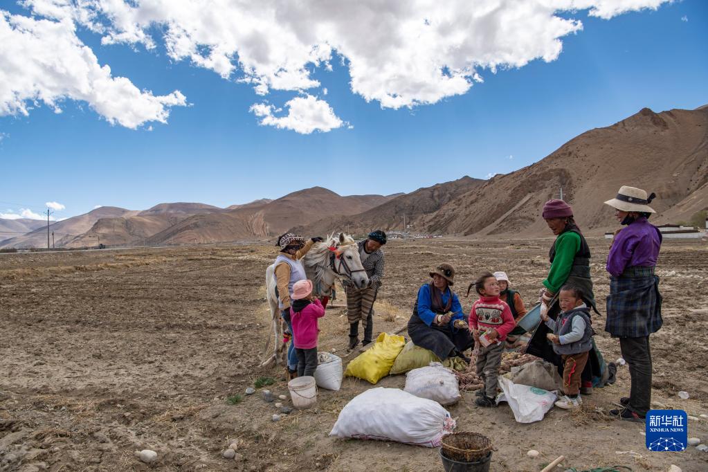 西藏定日縣扎西宗鄉(xiāng)日白拉新村的村民在做播種前的準(zhǔn)備(5月10日攝)。新華社記者 姜帆 攝