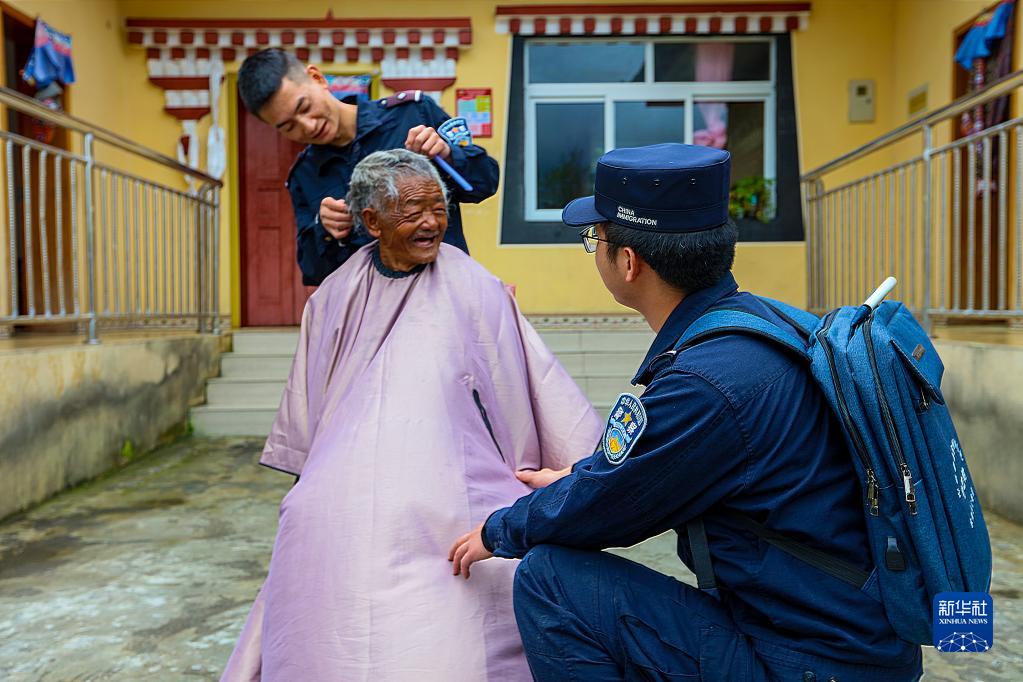2021年負(fù)責(zé)上察隅鎮(zhèn)古巴村走訪工作的移民管理警察張棟,主動向鐘維學(xué)習(xí)理發(fā)技術(shù)。鐘維一邊給張棟分享理發(fā)經(jīng)驗,一邊讓張棟給自己剪簡單的發(fā)型。半年后,掌握了簡單理發(fā)技術(shù)的張棟,也開始給古巴村的2名老人定期理發(fā)。