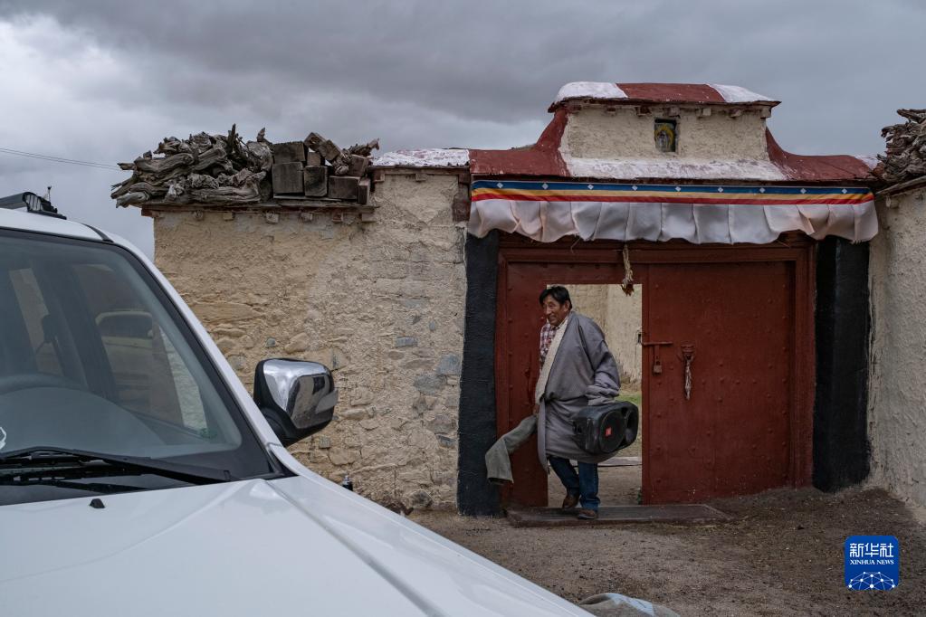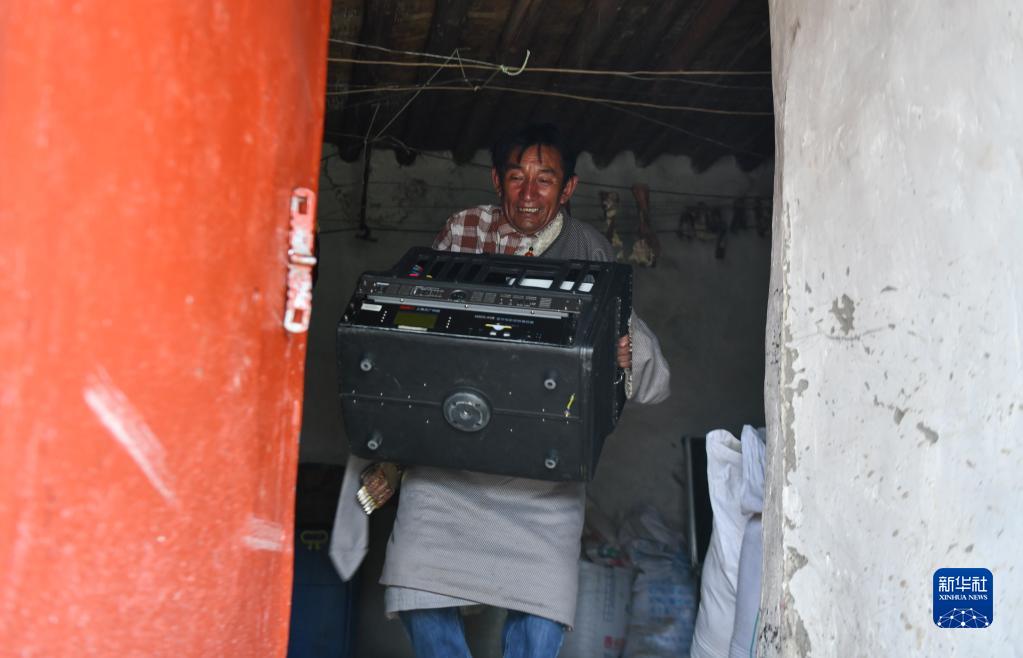 在西藏當(dāng)雄縣拉多村,羅珠在準(zhǔn)備放映電影所需的器材(5月20日攝)。新華社記者 卞婷 攝