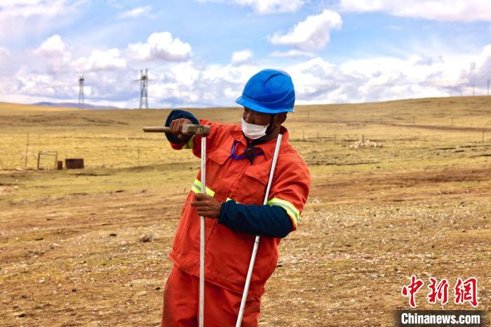 “這里是當(dāng)年建設(shè)青藏聯(lián)網(wǎng)工程時(shí)的凍土施工攻堅(jiān)帶,這樣的地方,也只有靠冬季受凍時(shí)施工。春夏時(shí)節(jié),便成了泥沼地?!?501號(hào)塔位年檢工作現(xiàn)場負(fù)責(zé)人董建明一邊推車,一邊介紹。