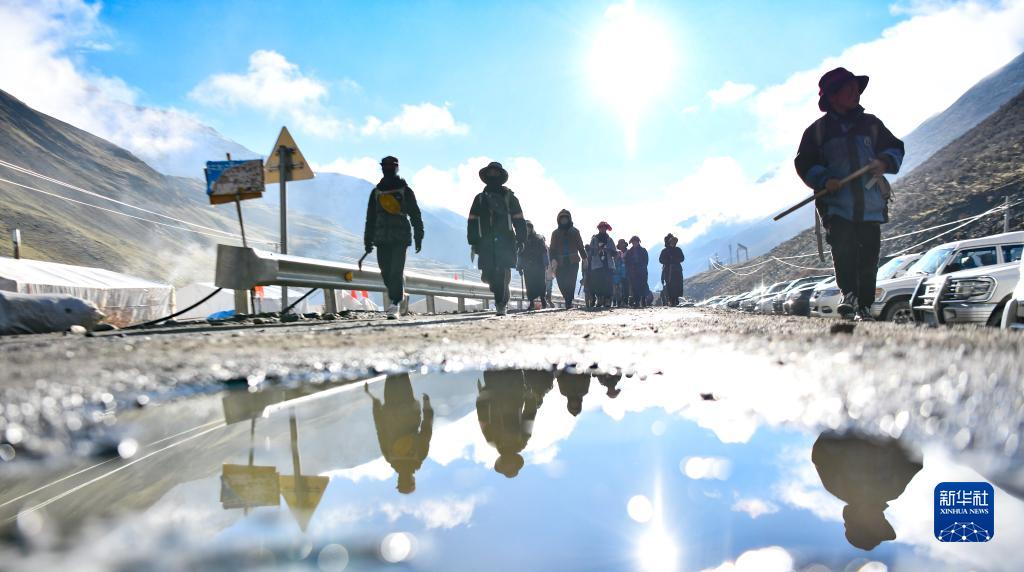 清晨,西藏那曲市比如縣良曲鄉(xiāng)然木塘村蟲草采集點(diǎn)的人們統(tǒng)一前往山上采集蟲草(5月26日攝)。新華社記者 姜帆 攝