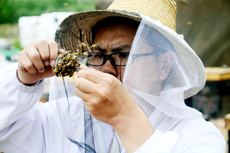 張亮富在取蜜。路家興攝