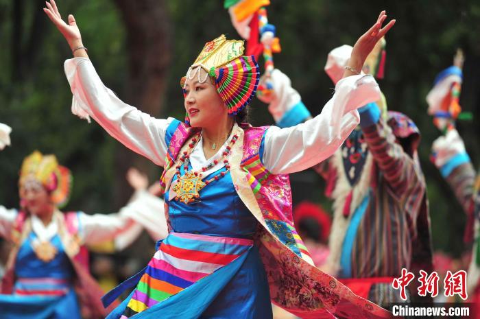 圖為藏戲表演?!∝暩聛?lái)松 攝