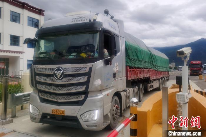 圖為貨運(yùn)車輛駛?cè)肓种グ鸵顺迿z測(cè)站,符合要求后可在西藏林拉高等級(jí)公路上行駛。西藏自治區(qū)交通運(yùn)輸廳 供圖