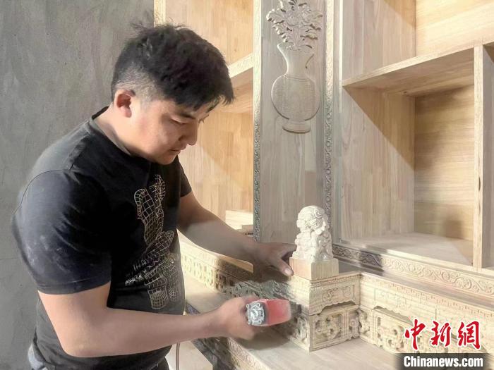 說干就干,2021年他在村里開了木材加工廠,為此,他還特地去外地學(xué)習(xí)操作方法,“藏式家具的雕花很復(fù)雜,但是我有壁畫的繪畫功底,學(xué)習(xí)起來非????!?/p>