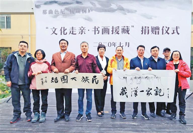 圖為2020年7月,那曲市色尼區(qū)“文化走親·書(shū)畫(huà)援藏”捐贈(zèng)儀式(資料圖片)。 記者 謝偉 攝