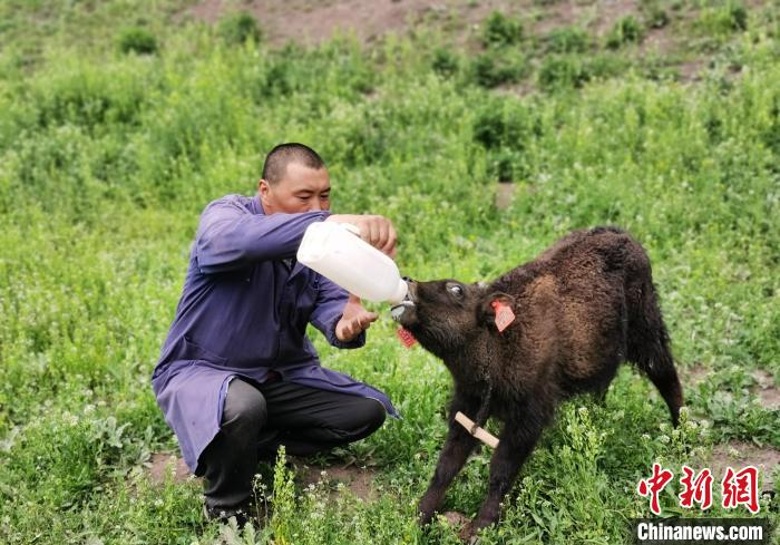 圖為給小牛犢喂奶?!?zhí)砀?攝