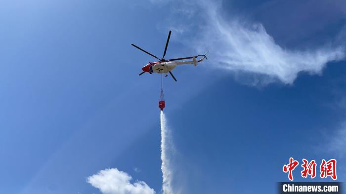 圖為演練現(xiàn)場,直升機(jī)吊桶取水作業(yè)。西藏森林消防總隊(duì)林芝支隊(duì) 供圖