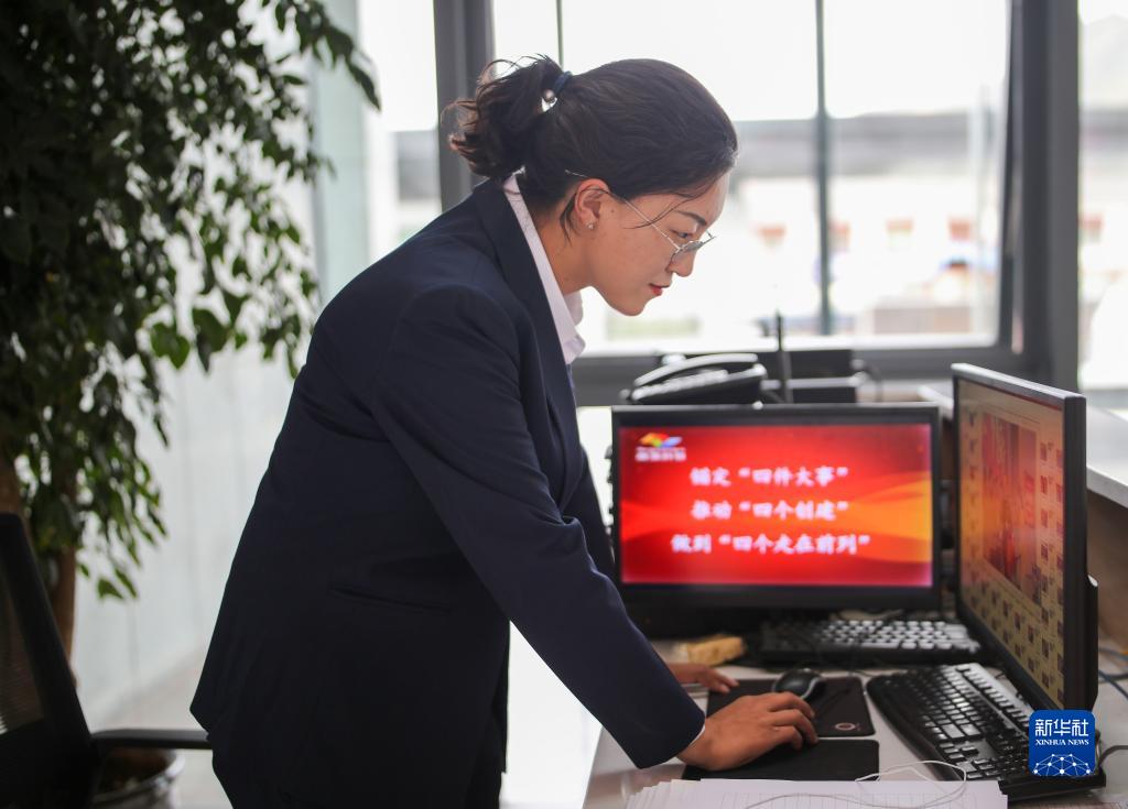 “格?;ㄩ_”大學(xué)生就業(yè)創(chuàng)業(yè)特訓(xùn)營學(xué)員、西藏藏建科技股份有限公司職員旦珍在工作中(2022年6月24日攝)。新華社記者 姜帆 攝