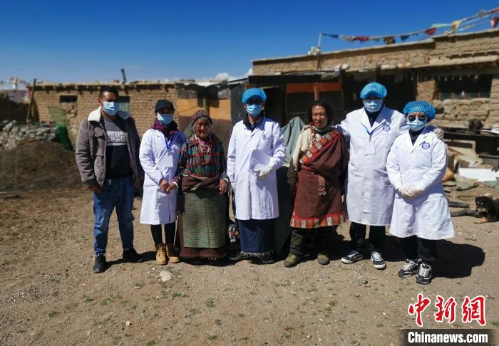 圖為醫(yī)護(hù)人員與基層牧民合影。普蘭縣人民醫(yī)院供圖