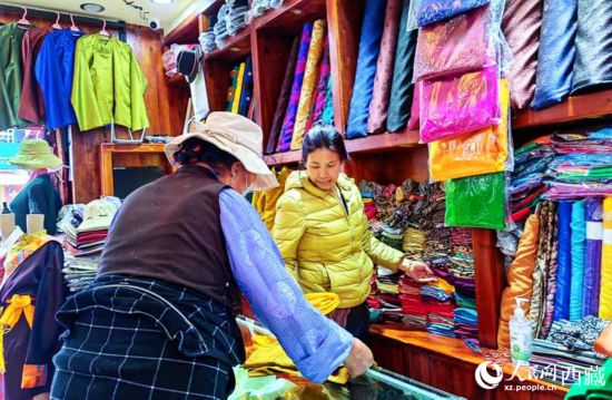 進(jìn)入旅游旺季后,來(lái)自天南地北的游客到拉薩八廓古城賞民俗品文化,位于八廓街上的朵究倉(cāng)藏裝店也因此成了必備網(wǎng)紅打卡店。“我在新聞里看到總書記來(lái)過你們店,所以專門過來(lái)的,想買一身藏裝作紀(jì)念,老板你幫我看看哪件合適?”來(lái)自東北的吳女士邊挑選衣服邊說。