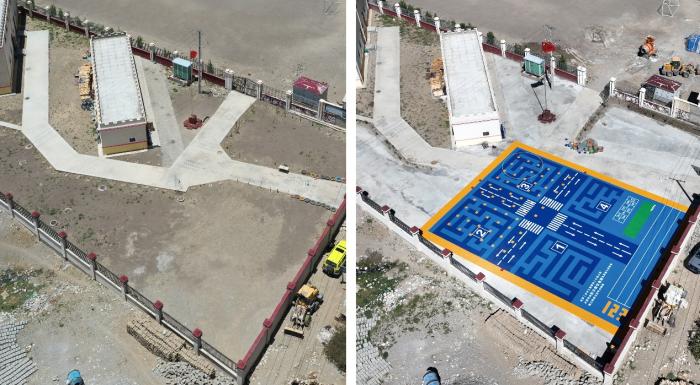 扎西宗鄉(xiāng)完全附屬小學幼兒園操場建設前后航拍對比圖