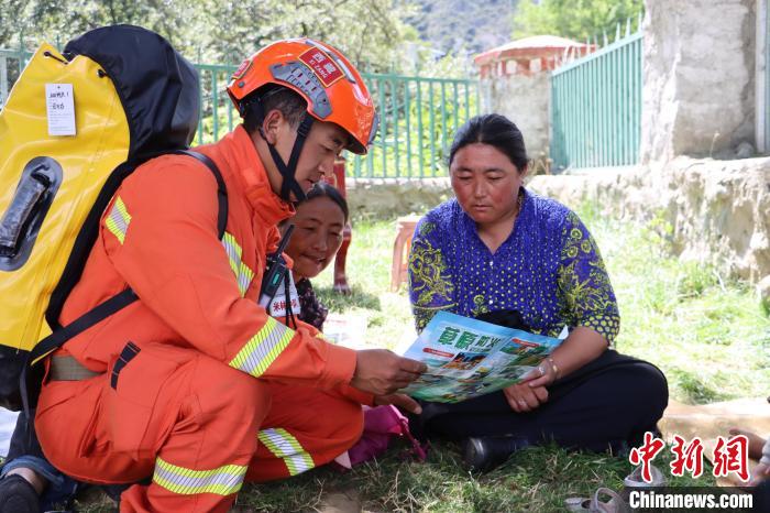 圖為拉練途中為駐地群眾普及防火知識。 林芝市森林消防支隊供圖