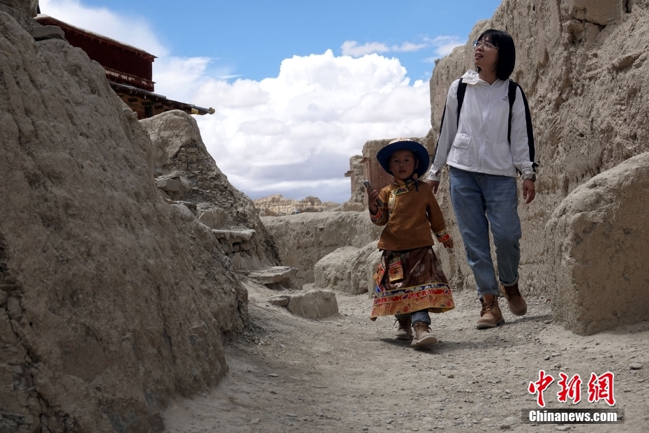 8月4日,西藏自治區(qū)阿里地區(qū)札達縣,執(zhí)行2022年夏季科考任務(wù)的中國第二次青藏高原綜合科學(xué)考察研究(青藏科考)“人類活動歷史及其影響”分隊,在古格王朝(966年-1630年)都城遺址實地考察調(diào)研。據(jù)了解,古格王朝都城遺址總面積達75萬平方米,海拔約3900米,現(xiàn)有窯洞、碉堡、白塔等各類建筑遺跡共1416處,整個建筑規(guī)模宏大,布局嚴(yán)謹(jǐn),氣勢宏偉,1961年被列為國家級首批重點文物保護單位。圖為一對母子游客在遺址頂端參觀。 中新社記者 孫自法 攝