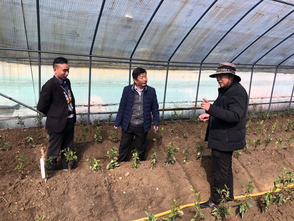 裴含龍(右二)在錯那縣勒布溝貢日鄉(xiāng)指導(dǎo)大棚茶葉栽培。(受訪者供圖)