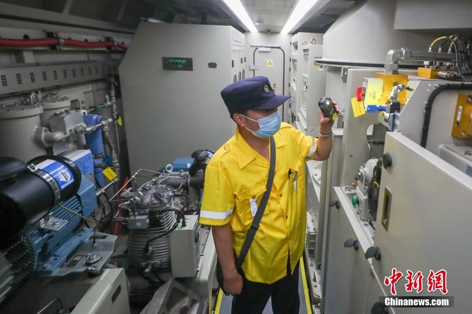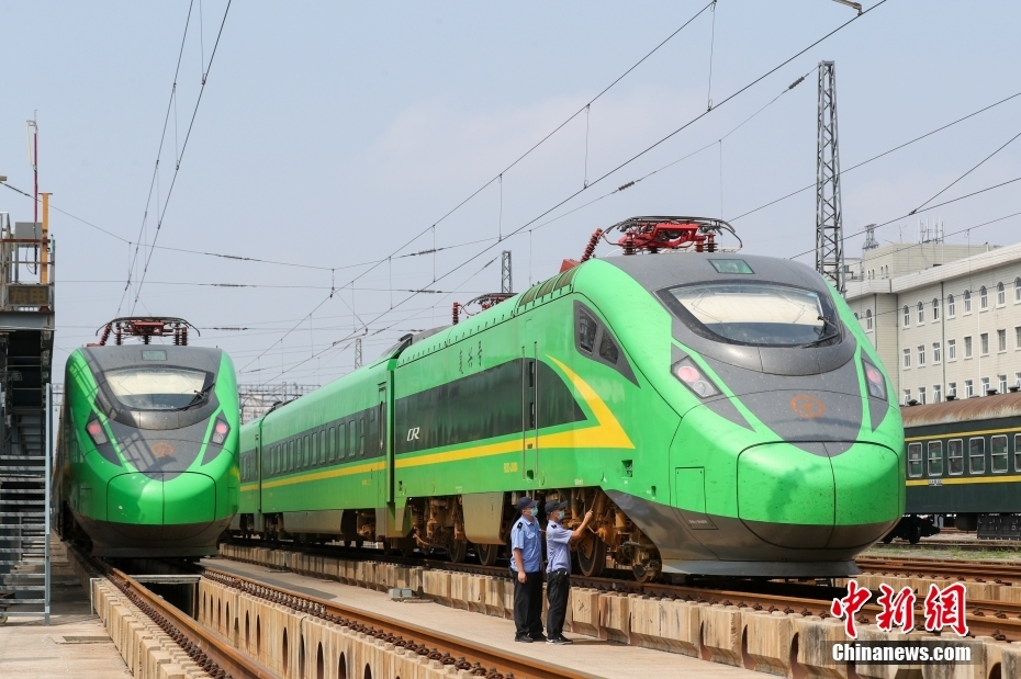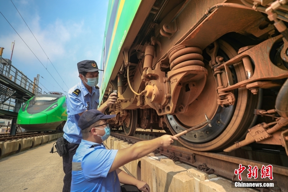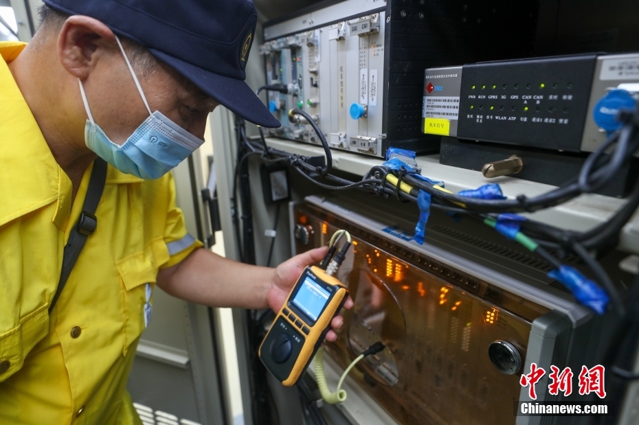 8月17日,北京車輛段北京西庫(kù)檢車間內(nèi),北京電務(wù)段檢修人員對(duì)時(shí)速160公里動(dòng)力集中型復(fù)興號(hào)動(dòng)車組(俗稱“綠巨人”)的運(yùn)行數(shù)據(jù)進(jìn)行檢查。這里是京津冀地區(qū)唯一的“綠巨人”檢修維修基地,肩負(fù)著18列共計(jì)261節(jié)車輛的檢修任務(wù)。隨著暑運(yùn)逐漸迎來返校返程高峰,檢修人員也在加班加點(diǎn)為列車做好體檢工作,確保運(yùn)行安全。 中新社記者 賈天勇 攝