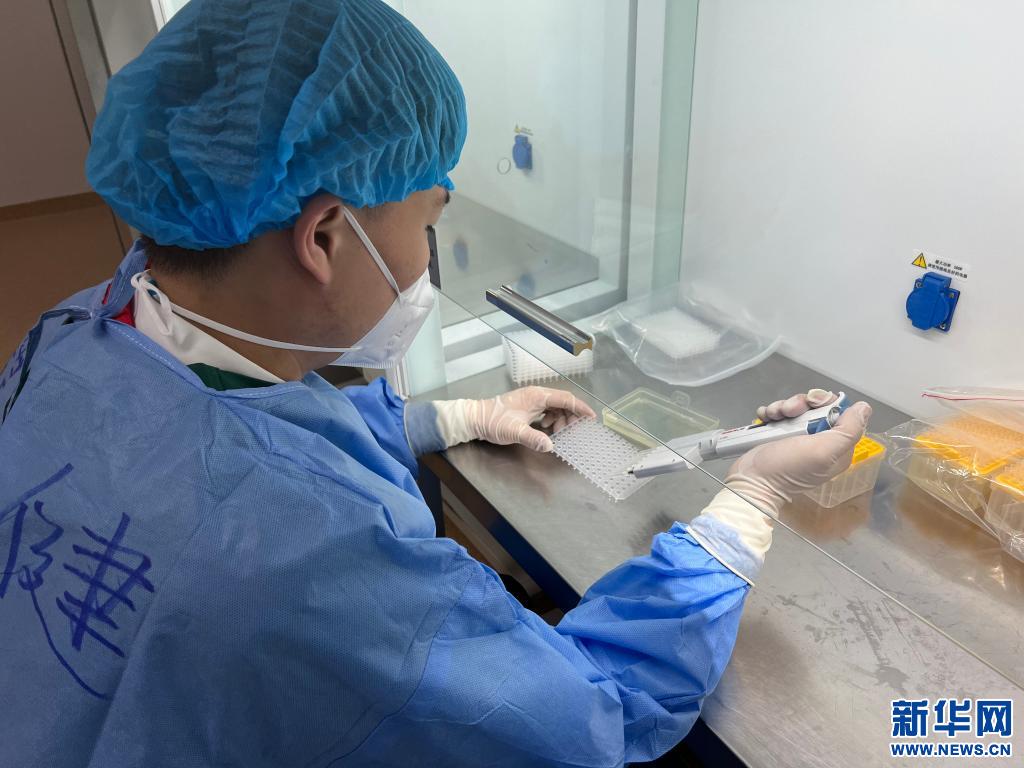 核酸檢測人員在北京援藏抗疫醫(yī)療隊第二核酸檢測實驗室進行核酸檢測(受訪者供圖)。