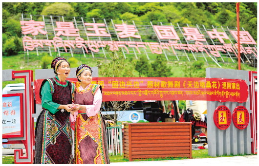 文藝是時(shí)代前進(jìn)的號(hào)角,最能代表一個(gè)時(shí)代的風(fēng)貌,最能引領(lǐng)一個(gè)時(shí)代的風(fēng)氣?!短爝吀裆;ā穼?dǎo)演加永江措說,《天邊格?;ā愤@部歌舞劇就是要把“三人鄉(xiāng)”守邊的故事搬上舞臺(tái),讓它傳遍大江南北,激勵(lì)更多人加入愛國守邊的行列。