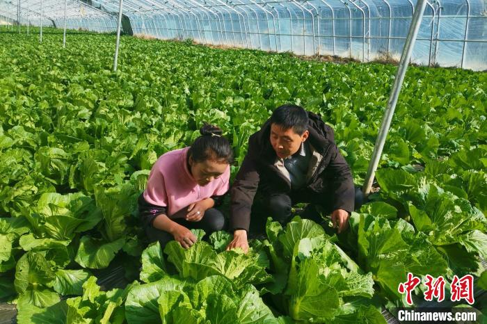 來自山東壽光的孟德利(右)在西藏康馬縣蔬菜大棚內(nèi)?!∈茉L者供圖