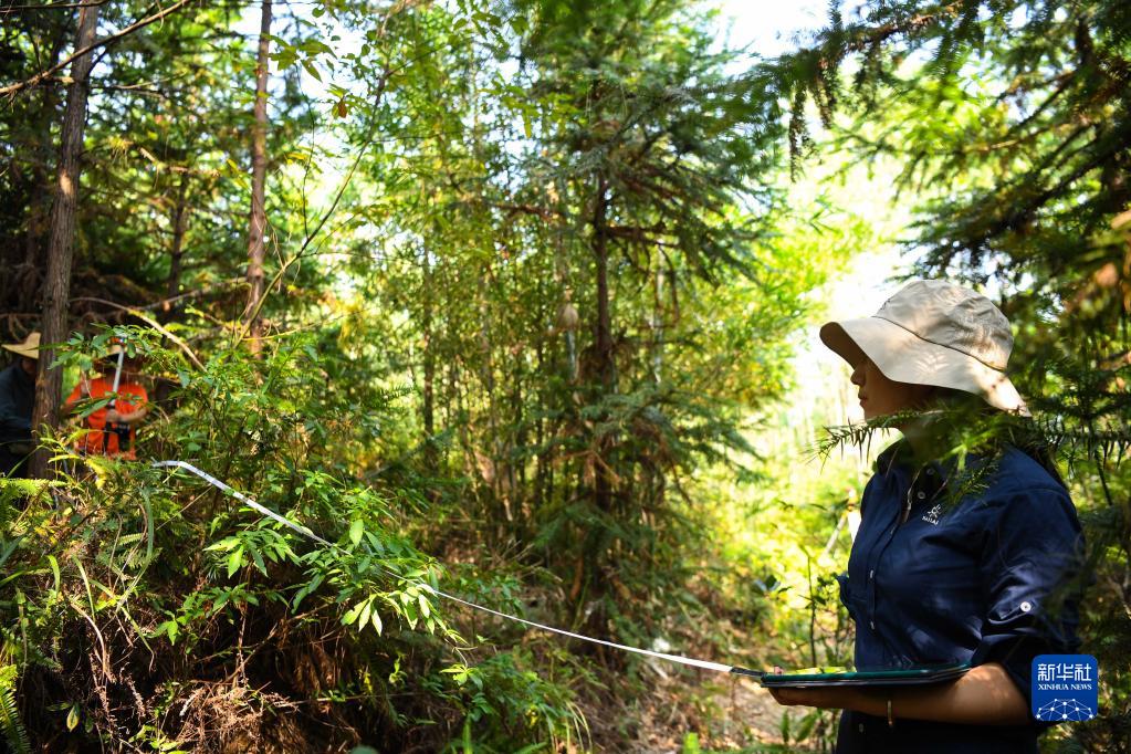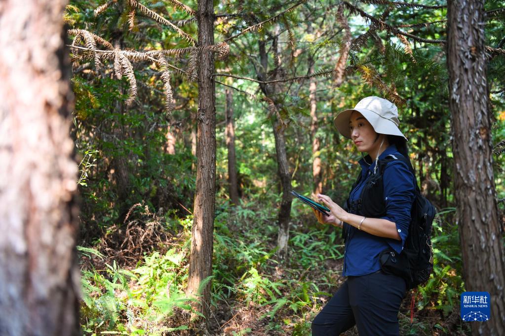 9月22日,白拉曲珍在位于廣東韶關(guān)樂(lè)昌市張溪村的生態(tài)監(jiān)測(cè)樣地工作。新華社記者 鄧華 攝