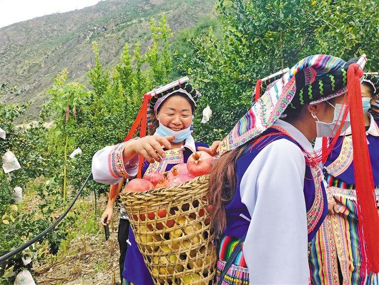 9月22日,林芝市察隅縣察瓦龍鄉(xiāng)松塔村怒族群眾正在采摘軟籽石榴。馬傳秋 攝