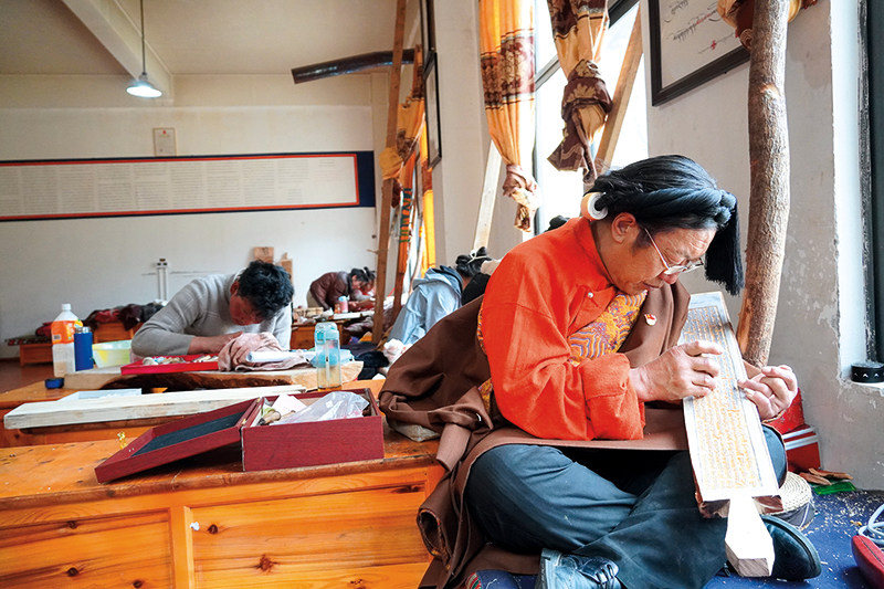 江達縣的波羅古澤木刻雕版技藝,2008年被列入第一批國家級非物質(zhì)文化遺產(chǎn)擴展名錄。該技藝以當?shù)厥a(chǎn)的樺膠樹為原料,制作出的工藝品做工精細。一塊雕版制作完成需經(jīng)10多道工序,使用的刻板雕刻工具有40余種。