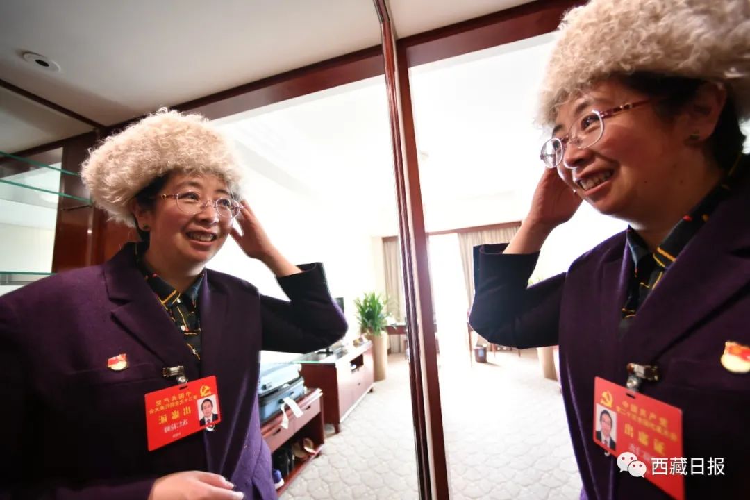 作為那曲市特殊教育學(xué)校校長(zhǎng),次仁拉姆代表此次赴京參會(huì)專門戴上了學(xué)生親手制作的帽子,將以飽滿的熱情開好這次大會(huì)。記者 旦增西旦 攝