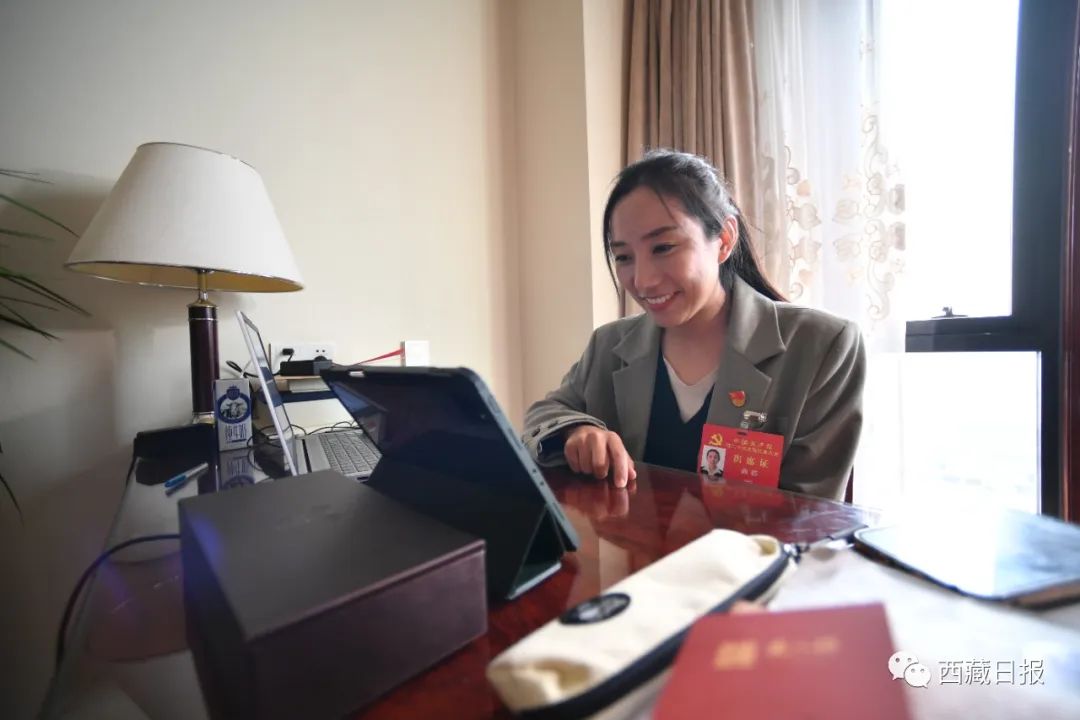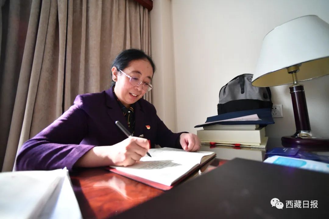 這是次仁拉姆代表在撰寫發(fā)言材料。記者 旦增西旦 攝