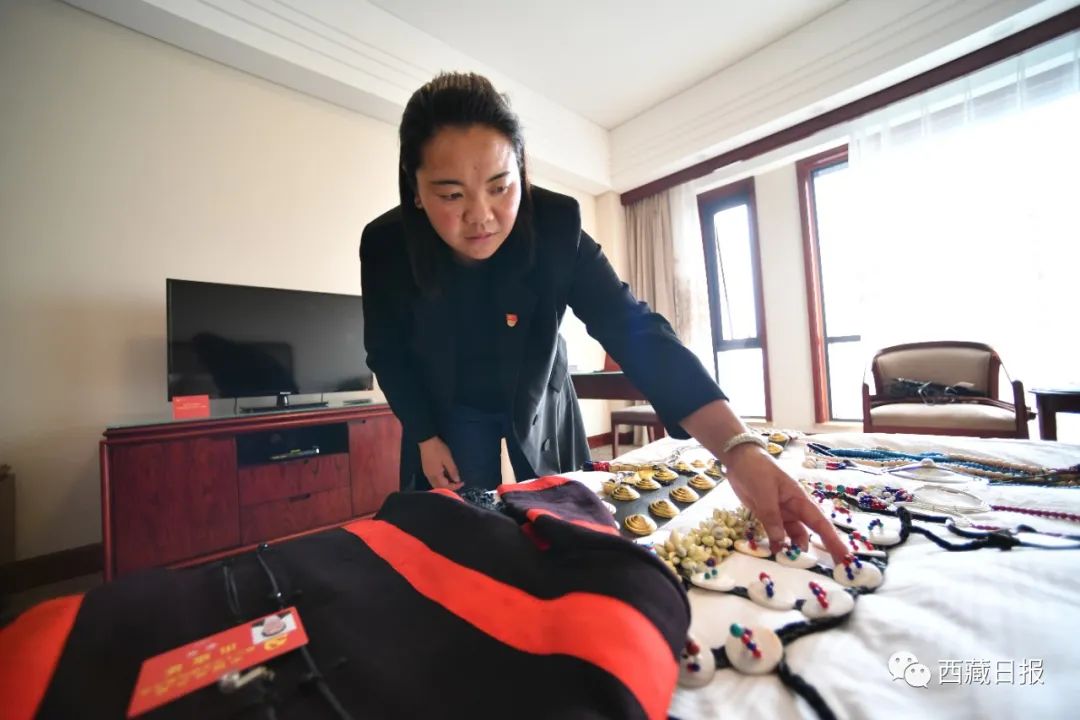 這是亞夏代表在整理出席大會(huì)穿的珞巴民族服裝。記者 旦增西旦 攝