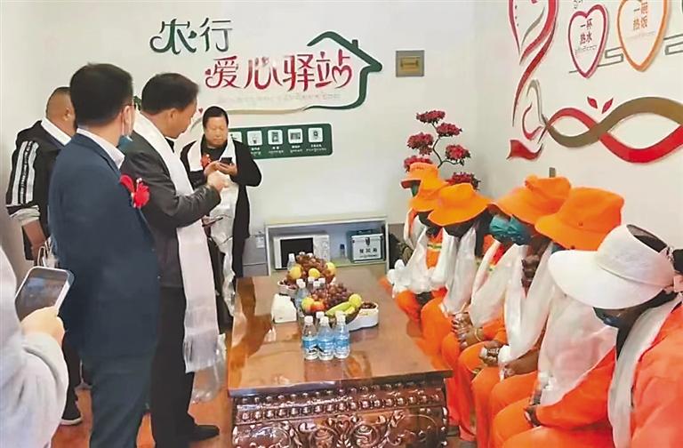 農(nóng)行日喀則分行在臨街網(wǎng)點(diǎn)設(shè)立“農(nóng)情暖域——愛(ài)心驛站”,為戶外勞動(dòng)者提供便民服務(wù)。