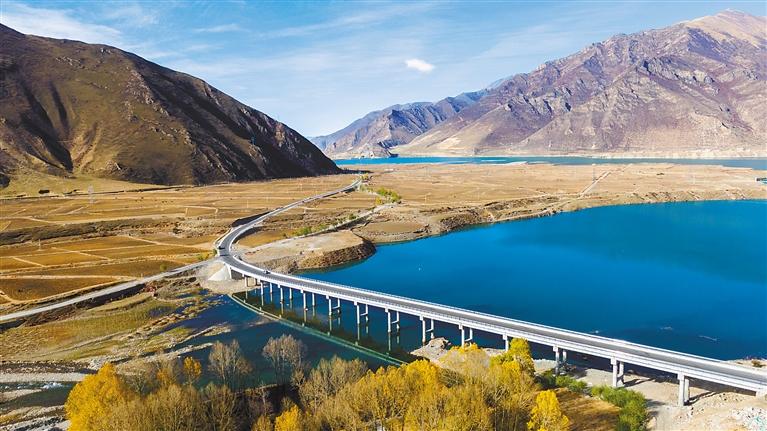 黨的十八大以來,西藏交通運(yùn)輸事業(yè)取得巨大成就,形成了縱橫交錯(cuò)、四通八達(dá)的綜合交通運(yùn)輸網(wǎng)絡(luò)。十年來,全區(qū)公路總里程由6.52萬公里增至12.07萬公里,高等級(jí)(高速)公路通車?yán)锍逃?8公里增至1105公里,以拉薩為中心的3小時(shí)綜合交通圈正加快形成,拉林鐵路建成投運(yùn),復(fù)興號(hào)首次開上高原……一條條團(tuán)結(jié)線、一條條幸福路,為西藏經(jīng)濟(jì)社會(huì)發(fā)展提供了有力支撐。