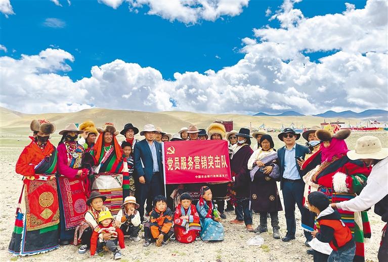 農(nóng)行阿里分行黨員服務(wù)營(yíng)銷突擊隊(duì)把金融服務(wù)送到百姓家門(mén)口。