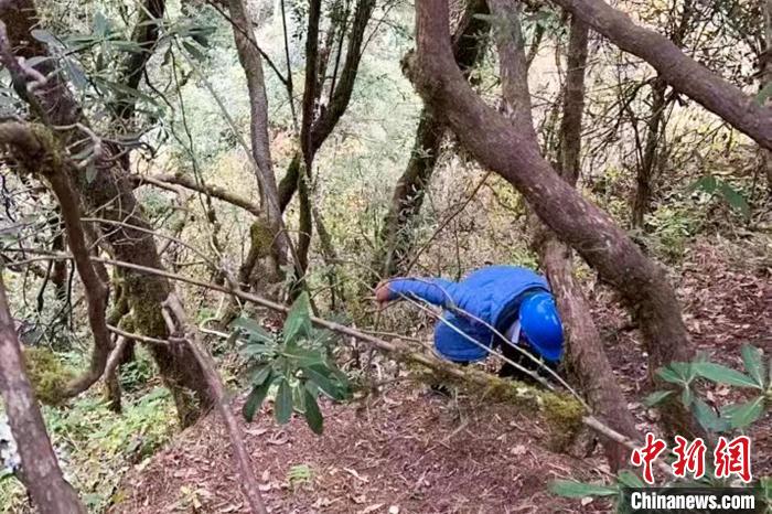 圖為西藏林芝波密縣10千伏“蓋塔線”巡線員工穿越原始森林?!W(wǎng)波密縣供電服務(wù)中心 供圖